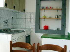 la cucina che e distacatta dalla camera. Il frigorifero si trova nella